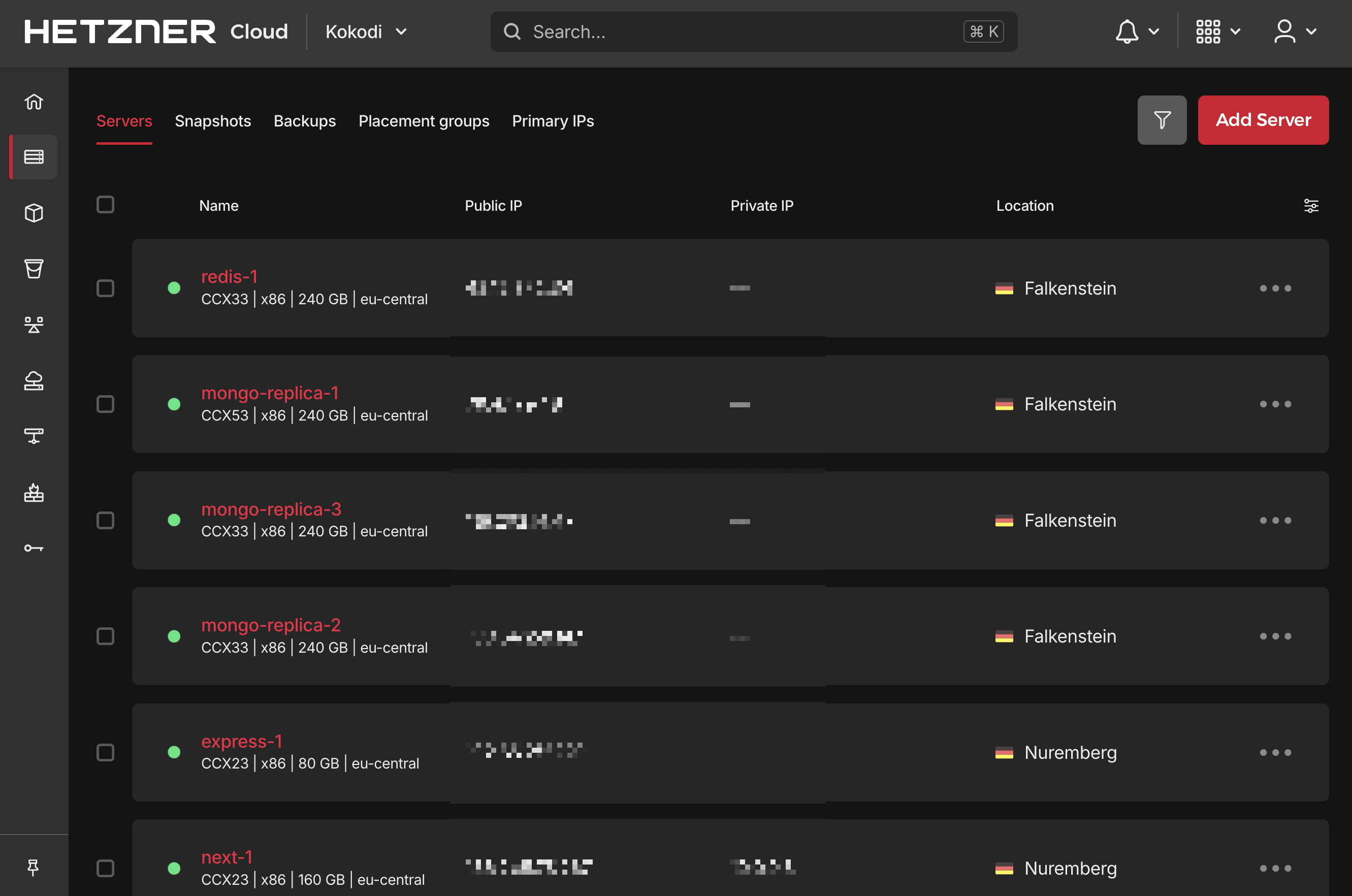 For production deployment, I migrated the infrastructure to Hetzner, a provider offering more affordable cloud and bare-metal servers. By moving to Hetzner, I gained access to powerful hardware at a fixed monthly cost, which proved to be much more cost-efficient for our usage pattern compared to the auto-scaling cloud costs on AWS. I set up our production environment on Hetzner with multiple virtual machines: some were designated for the Next.js application servers, and others for the MongoDB database replicaset, and so on. A load balancer (software-based using Nginx/HAProxy, or a cloud load balancer service) was configured to distribute incoming requests among the Next.js application instances, ensuring no single server became a bottleneck. This separate load-balanced application tier allowed the web app to handle large numbers of simultaneous users. The database tier (the 3-node MongoDB replica set) ran on its own trio of Hetzner servers, providing resilience (if the primary went down, a secondary could take over automatically) and read scalability (the secondaries could offload read queries). I also hosted our Redis cache on the Hetzner. The network setup on Hetzner was configured with proper security groups and firewalls, and I used Hetzner Cloud’s capabilities for monitoring resource usage (CPU, memory, disk I/O) to ensure our sizing was adequate. The switch to Hetzner was justified by a significant reduction in monthly infrastructure costs while still meeting our performance requirements. In essence, after proving the system’s capabilities on AWS, I optimized for cost by running it on Hetzner, where I have full control over the machines and can fine-tune the environment.