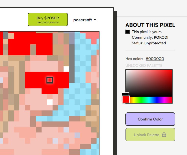 The pixel editing interface prioritizes both precision and ease of use, with thoughtful additions like color pickers, community territory visualization, and battle status indicators.