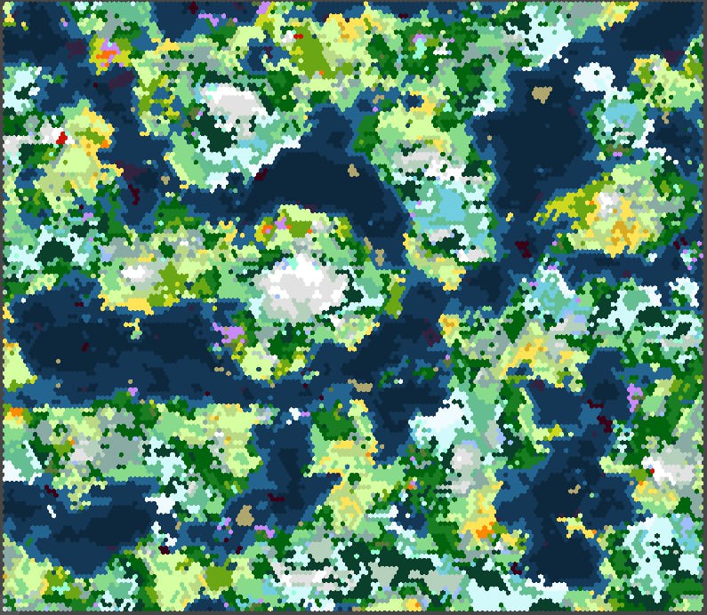 One of the most technically challenging aspects of the project was developing the interactive world map. This feature needed to visualize the game world with different biomes, elevation levels, and ownership status, while maintaining performance even with thousands of hexagonal tiles.